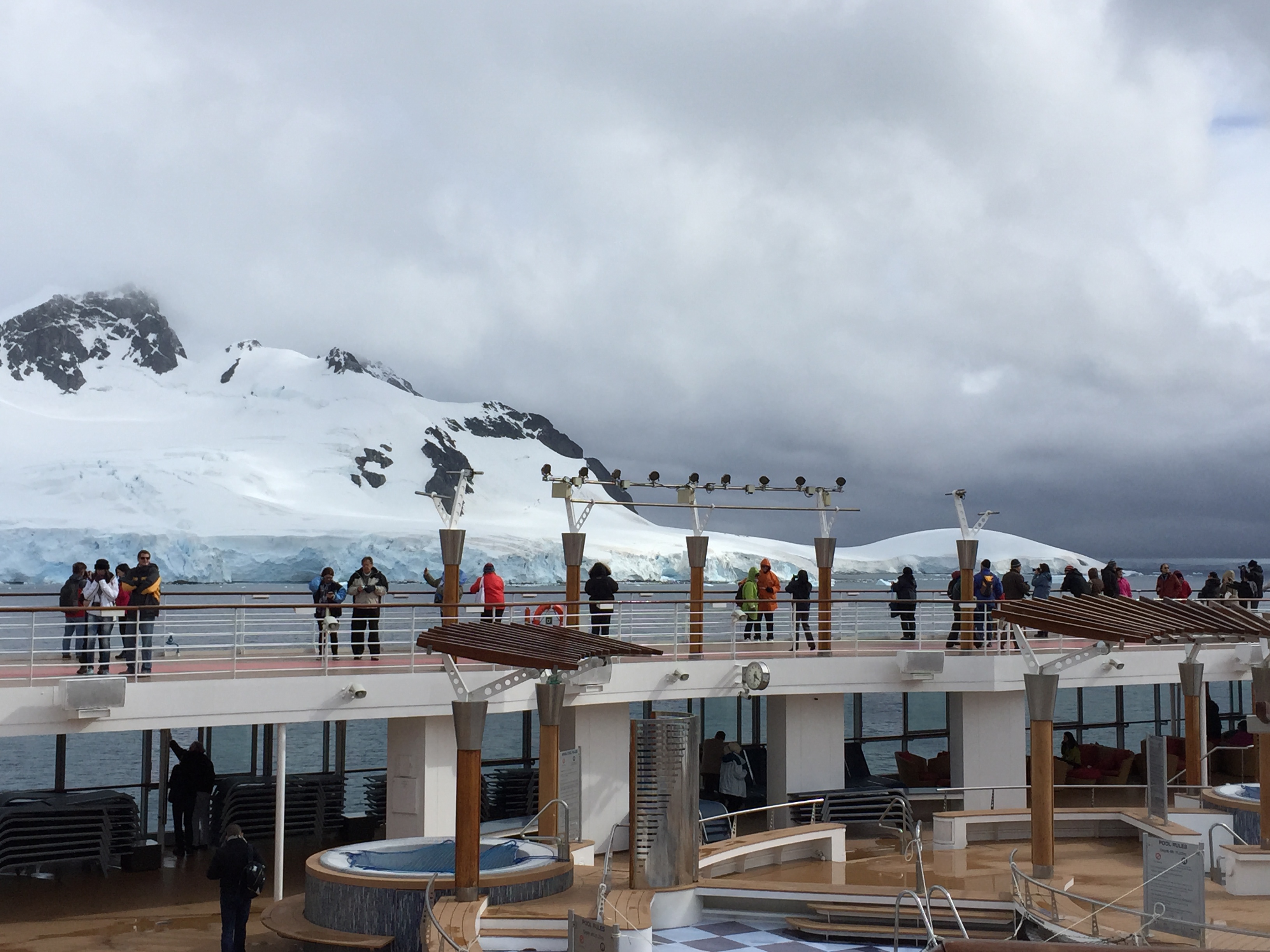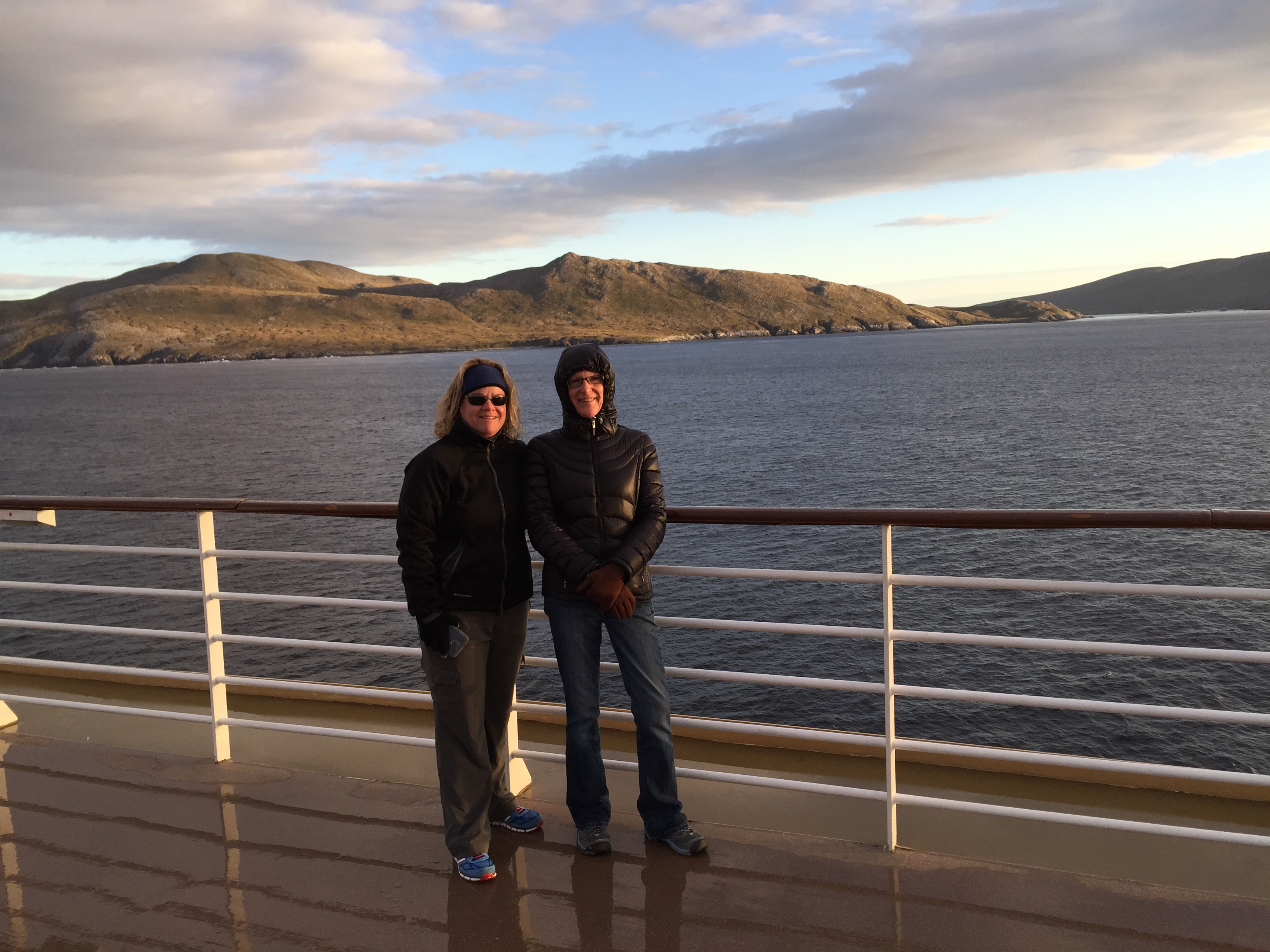 So, I found a spot and bellied up to the bar at one of the restaurants to have my first bite of South American beef. The menu was in Spanish, and I couldn’t read it, of course. (Funny….but, my French lessons did me precious little good on this trip!) As I perused the menu, the woman sitting next to me looked up and asked me where I was from. AHA……. an English speaker! I told her, and then asked what she liked to eat here. Her response was the “deer in the headlights stare” and “no habla ingles”. WHAT?! But, she called her sister over who had a few more words and the three of us together managed to get me one of the biggest steaks I have seen in quite a long time. It was so good….and pretty cheap….about $15.00 for the steak and a big bottle of water! Much to my surprise, I ate just about the whole thing before saying “ciao” to my two new friends and waddling back to the ship. What an experience. People are so nice!
