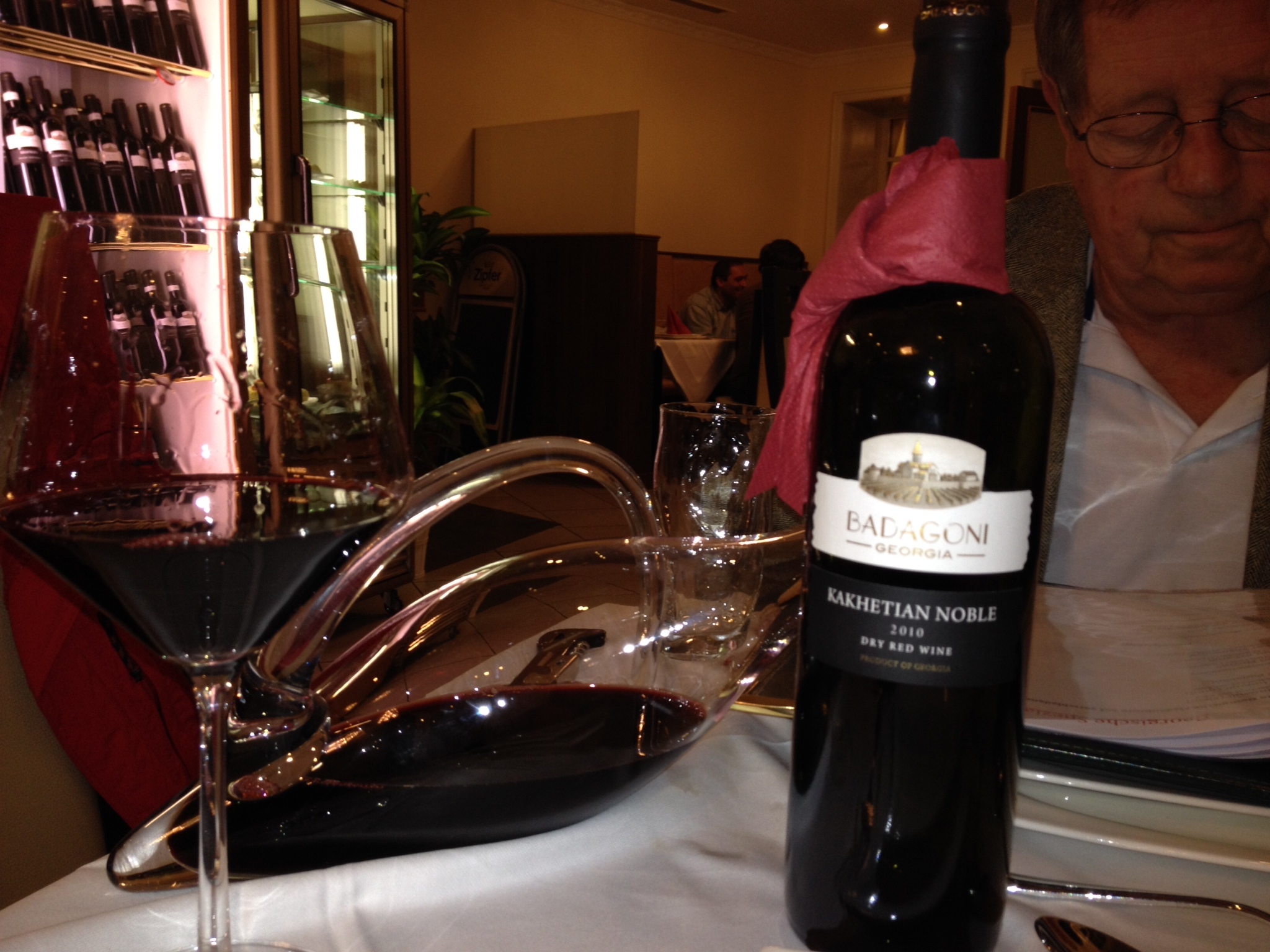 The very tiny hotel clerk gave us a recommendation for a restaurant around the corner. We were excited and hungry and anxiously anticipated what we would get for dinner. We were in for a real treat! The restaurant looked nice enough, so we went in. We all ordered. Mike ordered a beer and Carrie and I ordered a liter of the house wine that was recommended.