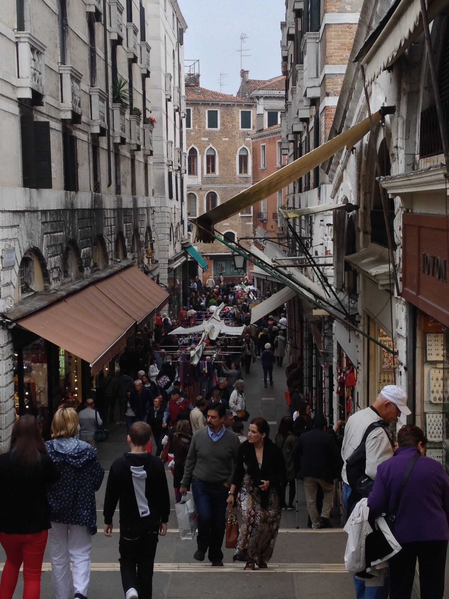 This was the good news. The bad news was that we were on the 3rd floor (top floor) of the hotel. There was no elevator and we had to negotiate our luggage up the very narrow and windy staircase. Gene and I knew this going in. We had discussed the fact, and agreed, that he would need to carry my suitcase because of my back. This was really best we could do! A 3 star hotel with no elevator and also no air conditioning for about $250.00 per night. Sticker shock!! Right?!! This is what you get at the last minute for a weekend in Venice.
